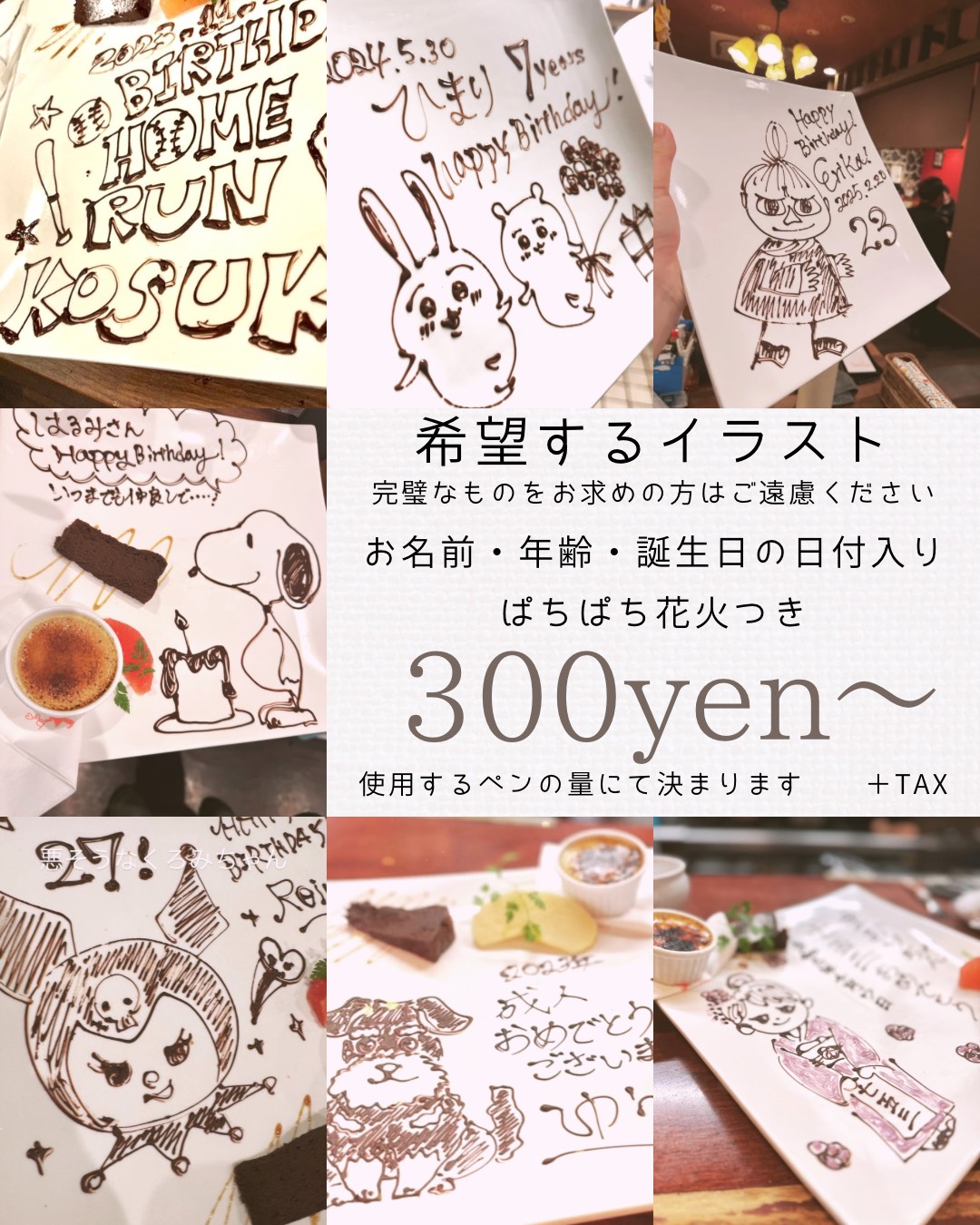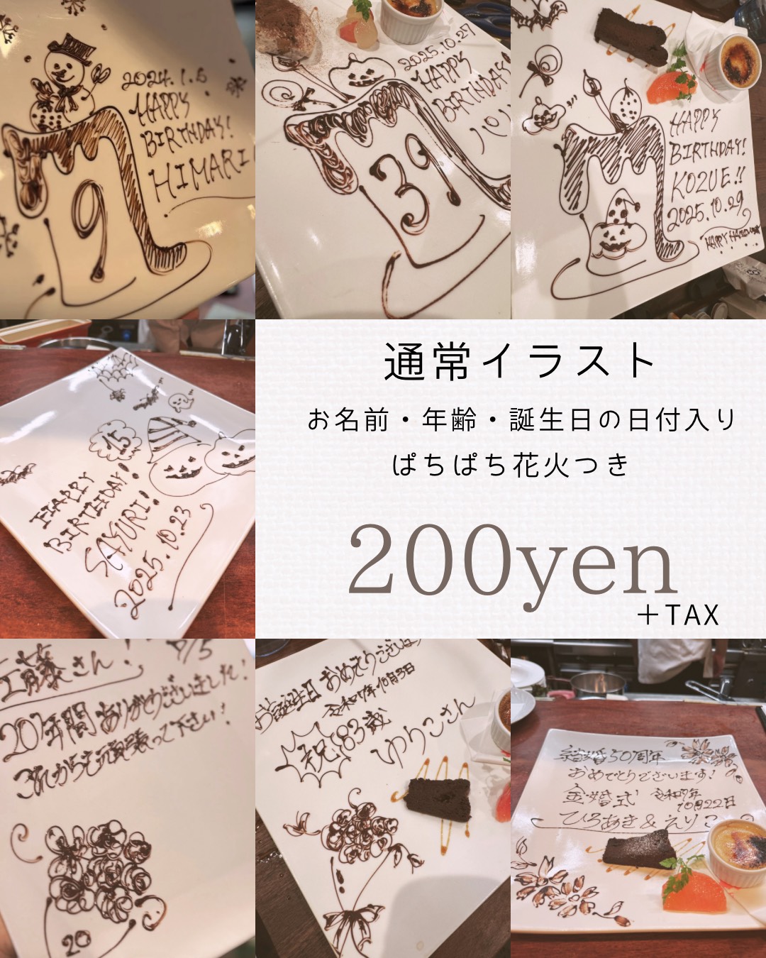 記念日の場合は2人分乗りますので、2人分のデザートのご料金となります。